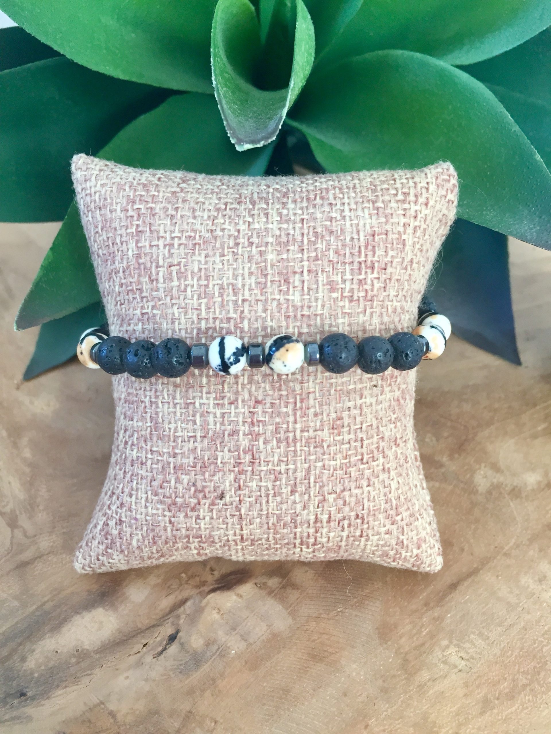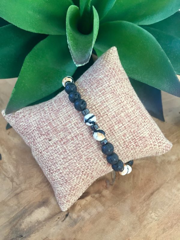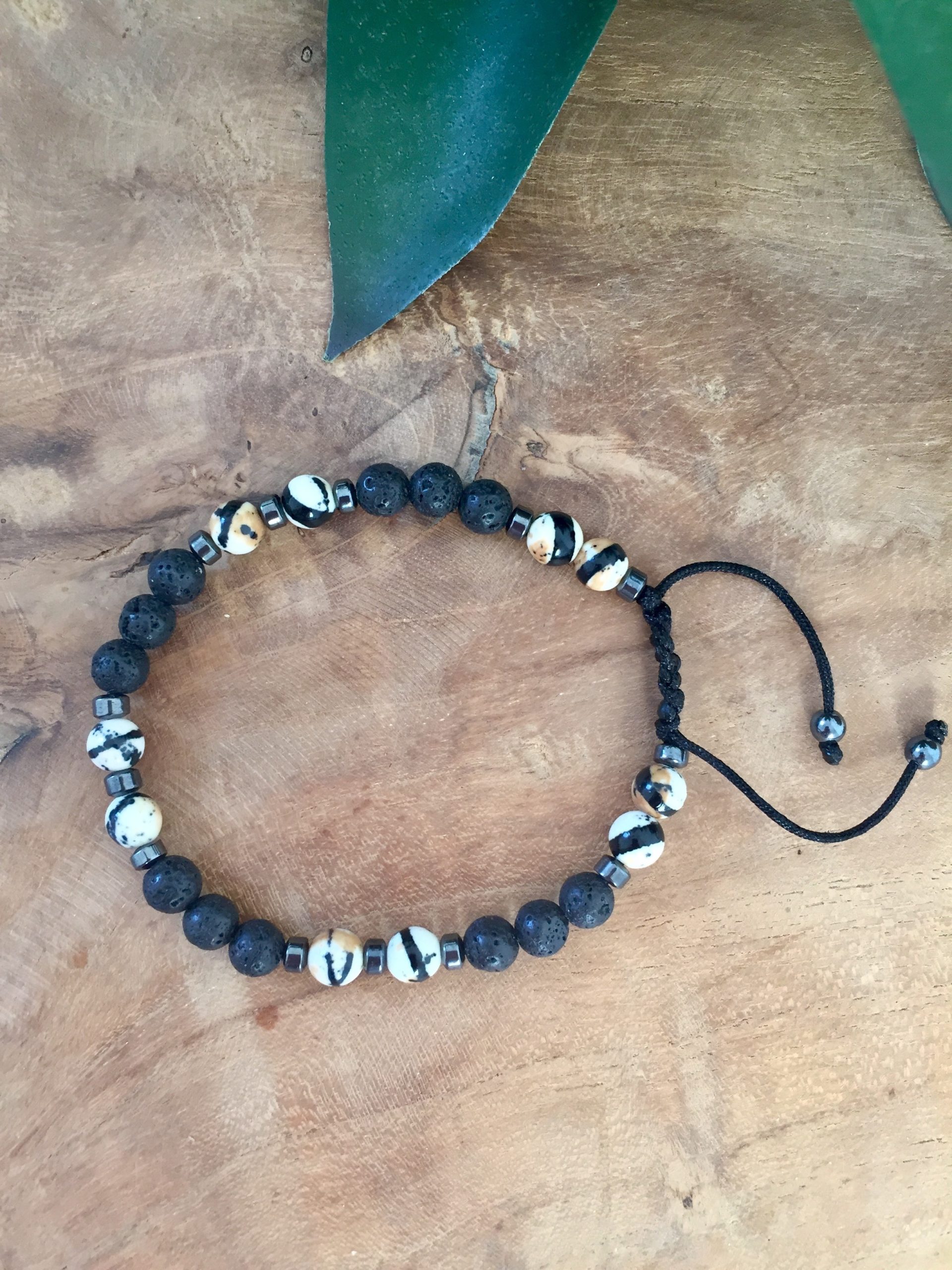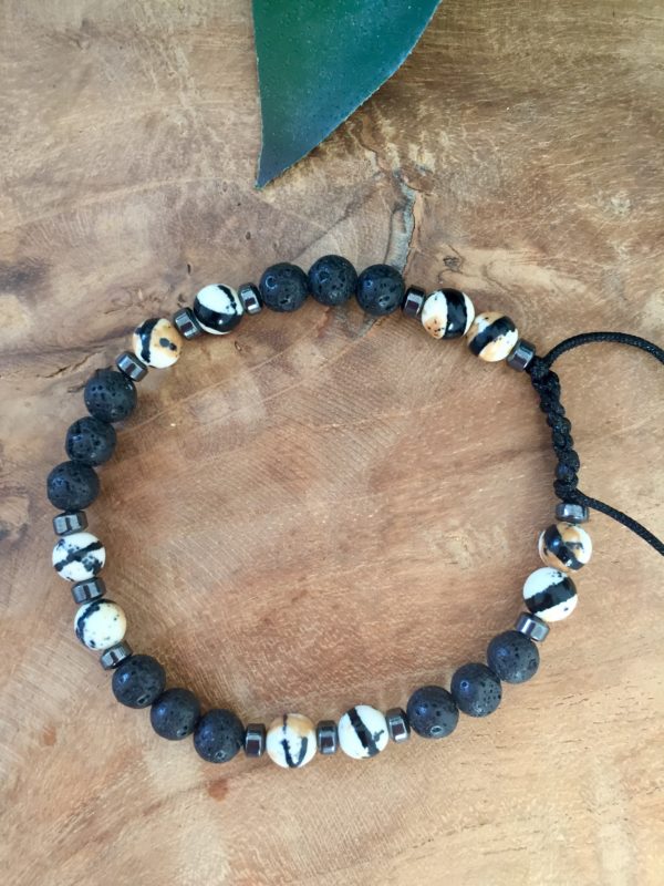 bracelet noir et blanc avec pierre de laves réglables.